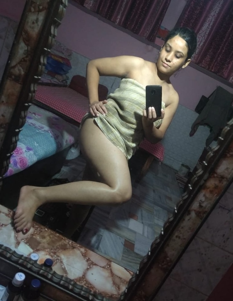 This hot Indian Bhabhi showing tits pictures are there many in number; but only 2 photos which have her pussy show. And that too in one photo alone she has shown her naked hairy pussy. The mirror nude selfie pic of hers looks so sexy that I had my eyes set on it for a while!